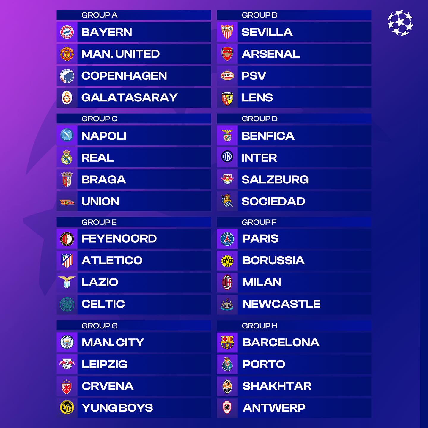 Group F: PSG, Borussia Dortmund, AC Milan, Newcastle
