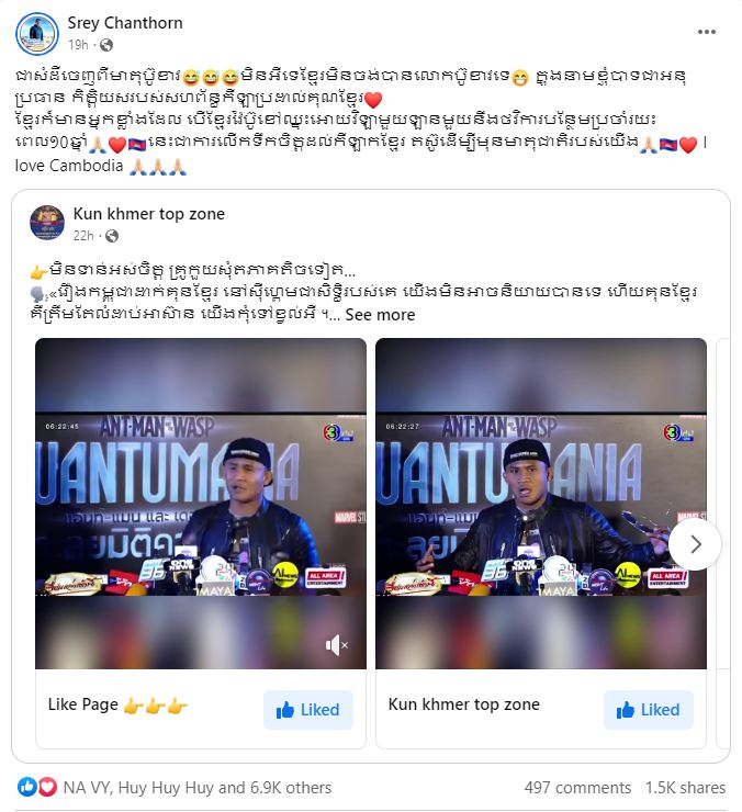 បន្ទាប់ពីមានបញ្ហាចម្រូងចម្រាស់រឿង គុនខ្មែរ និង Mauy Thai កីឡាករ ប៊ូខាវ បានប្រកាសប្រាប់ពិភពលោកថា រូបគេមិនមានដើមកំណើតជាខ្មែរនោះទេ ដោយនិយាយថា គេដើមកំណើតជាជនជនជាតិកួយនិងមានសញ្ចាតិថៃ ថែមទាំងបានប្រកាសក្តែងៗថា “ រឿងកម្ពុជាដាក់គុនខ្មែរ នៅស៊ីហ្គេមជាសិទ្ធិរបស់គេ យើងមិនអាចនិយាយបានទេ ហើយគុនខ្មែរ គឺត្រឹមតែលំដាប់អាស៊ាន យើងកុំទៅខ្វល់អី យើងត្រូវនិយាយដល់ក្នុងព្រឹត្តិការណ៍អូឡាំពិក ព្រោះរបស់ថៃយើង Original លេខ 1 ទៅហើយ ”។